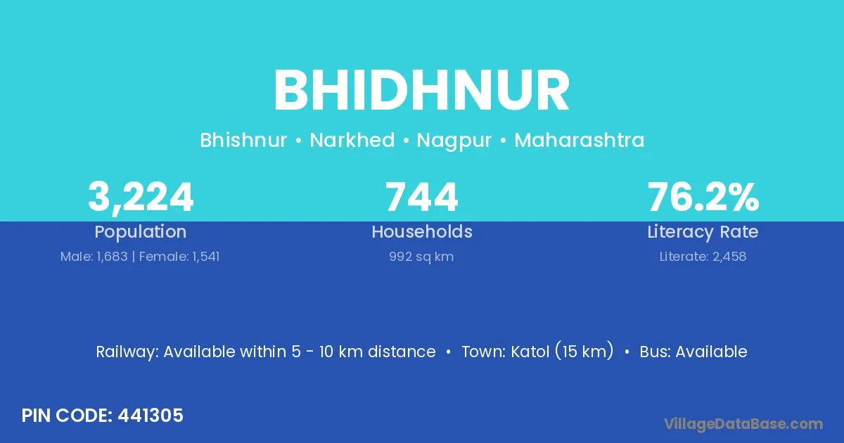 Katol (15 km) is the nearest town to Bhidhnur village for major economic activities and is located approximately 15 km away.