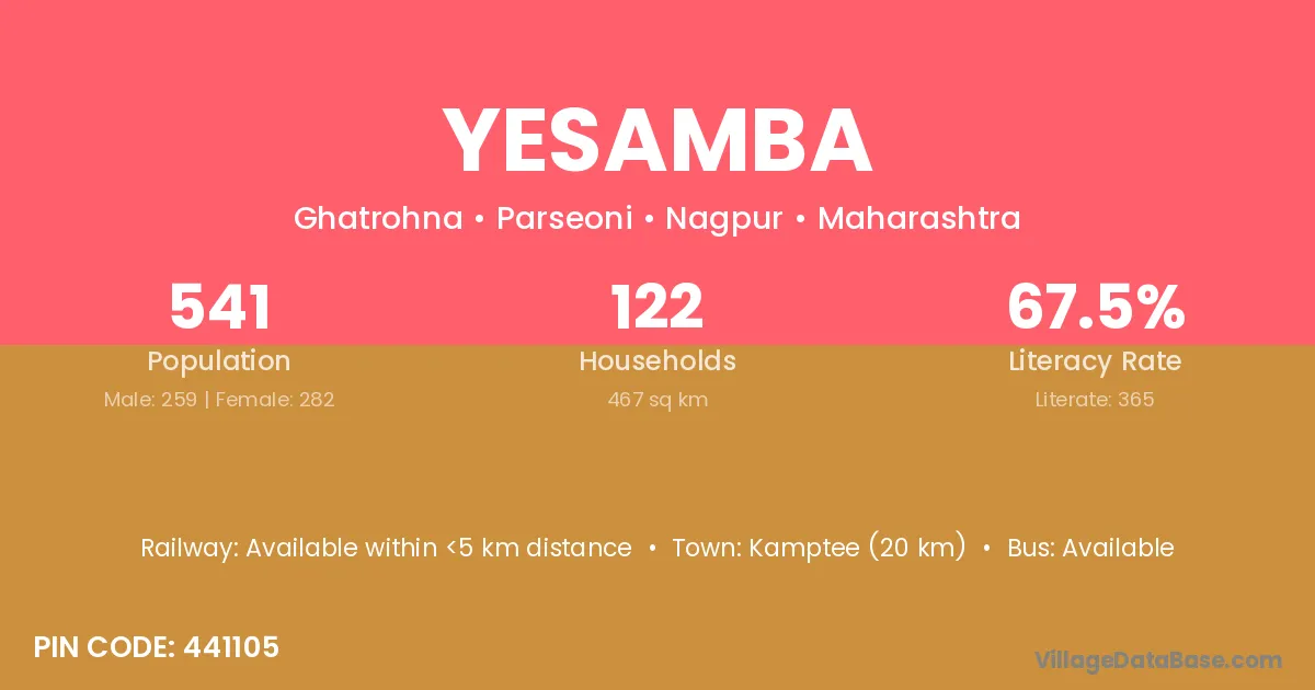 Kamptee (20 km) is the nearest town to Yesamba village for major economic activities and is located approximately 20 km away.