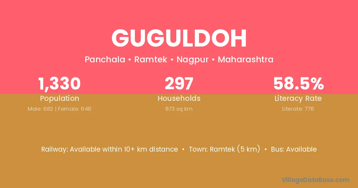 Ramtek (5 km) is the nearest town to Guguldoh village for major economic activities and is located approximately 5 km away.