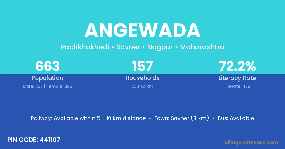 Savner (3 km) is the nearest town to Angewada village for major economic activities and is located approximately 3 km away.