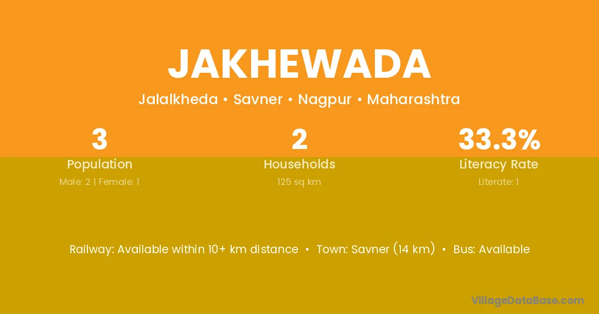Savner (14 km) is the nearest town to Jakhewada village for major economic activities and is located approximately 14 km away.