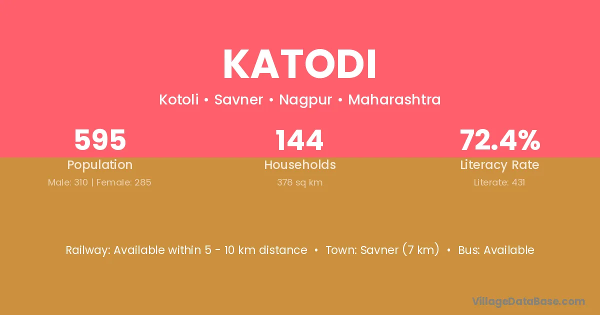 Savner (7 km) is the nearest town to Katodi village for major economic activities and is located approximately 7 km away.