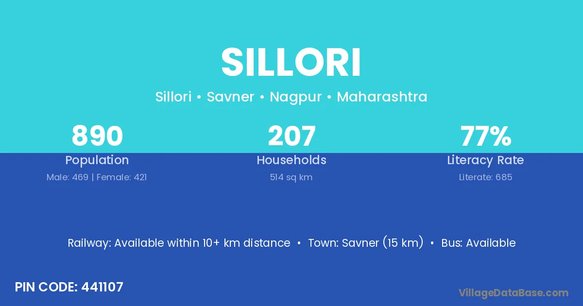 Savner (15 km) is the nearest town to Sillori village for major economic activities and is located approximately 15 km away.