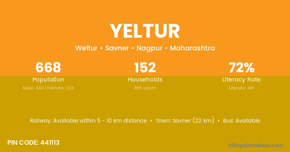 Savner (22 km) is the nearest town to Yeltur village for major economic activities and is located approximately 22 km away.