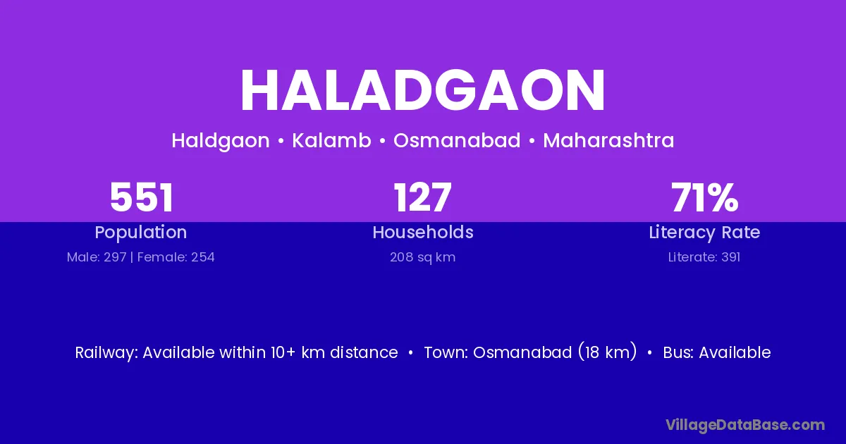 Umred (20 km) is the nearest town to Haladgaon village for major economic activities and is located approximately 20 km away.