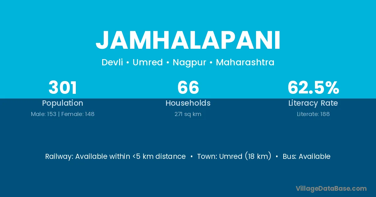 Umred (18 km) is the nearest town to Jamhalapani village for major economic activities and is located approximately 18 km away.