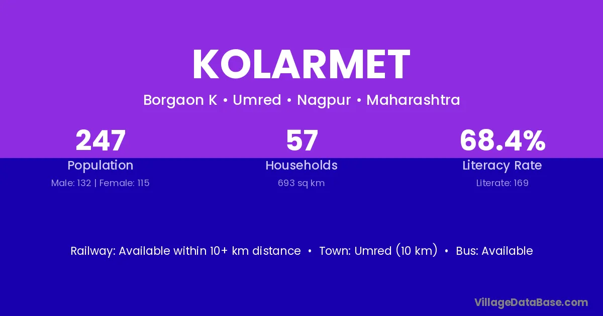 Umred (10 km) is the nearest town to Kolarmet village for major economic activities and is located approximately 10 km away.