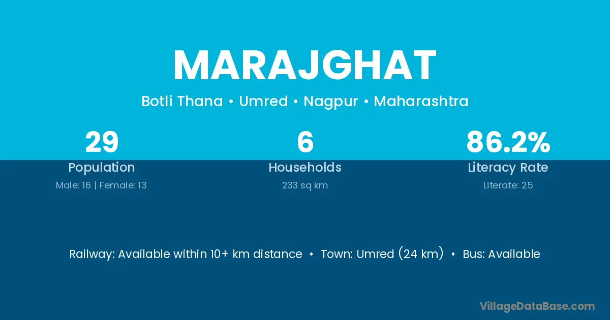 Umred (24 km) is the nearest town to Marajghat village for major economic activities and is located approximately 24 km away.