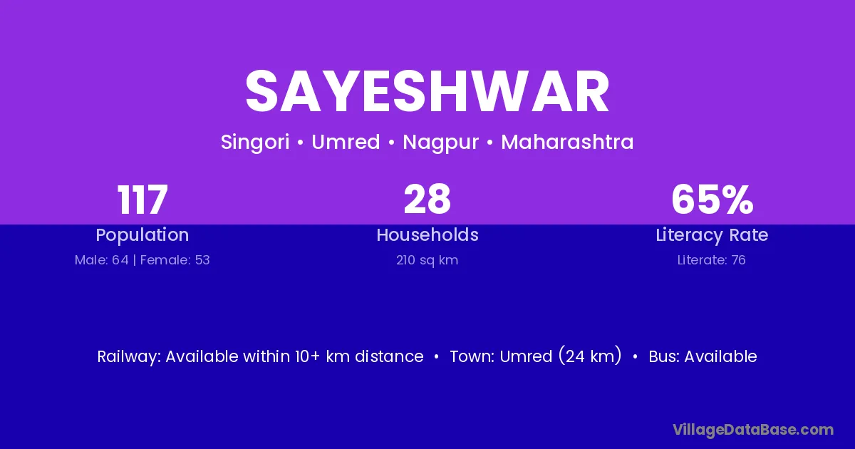 Umred (24 km) is the nearest town to Sayeshwar village for major economic activities and is located approximately 24 km away.