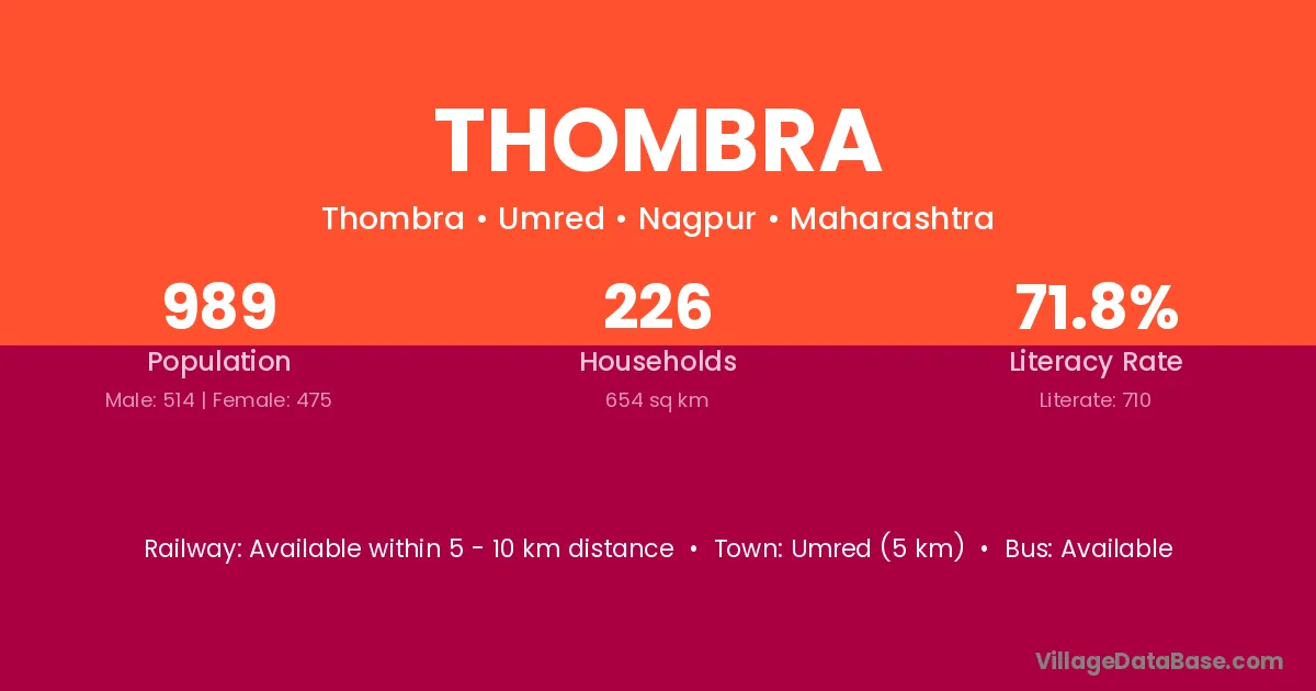 Umred (5 km) is the nearest town to Thombra village for major economic activities and is located approximately 5 km away.