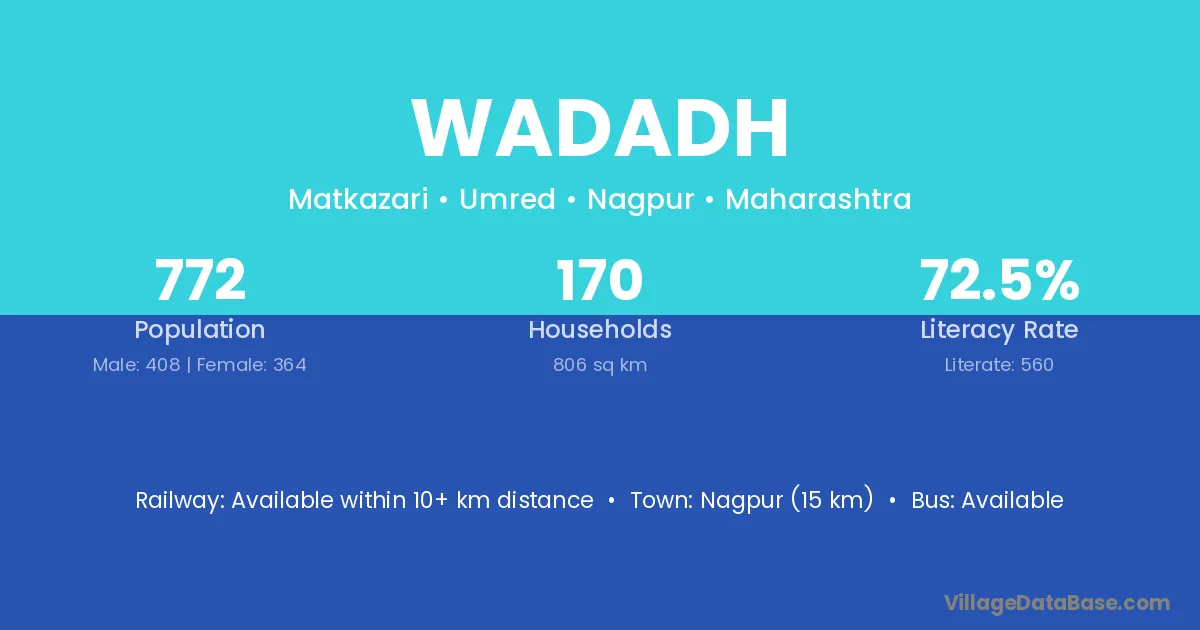 Nagpur (15 km) is the nearest town to Wadadh village for major economic activities and is located approximately 15 km away.