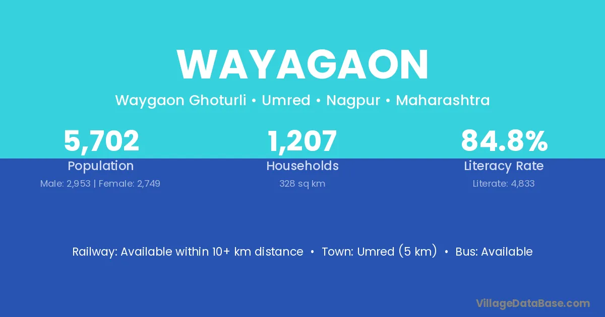 Umred (5 km) is the nearest town to Wayagaon village for major economic activities and is located approximately 5 km away.