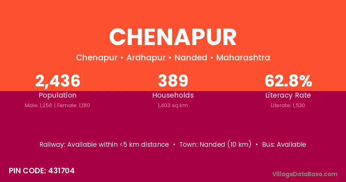 Nanded (10 km) is the nearest town to Chenapur village for major economic activities and is located approximately 10 km away.
