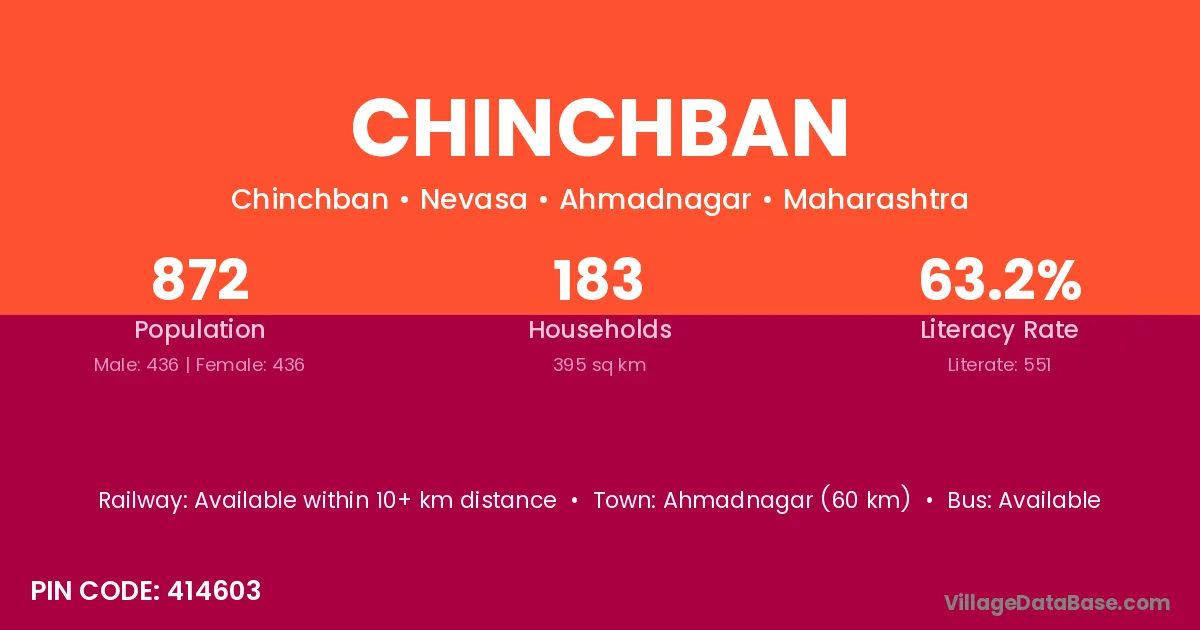Nanded Waghala (30 km) is the nearest town to Chinchban village for major economic activities and is located approximately 30 km away.