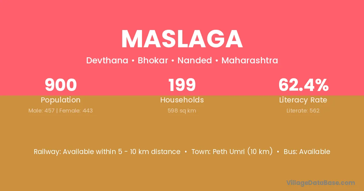 Peth Umri (10 km) is the nearest town to Maslaga village for major economic activities and is located approximately 10 km away.