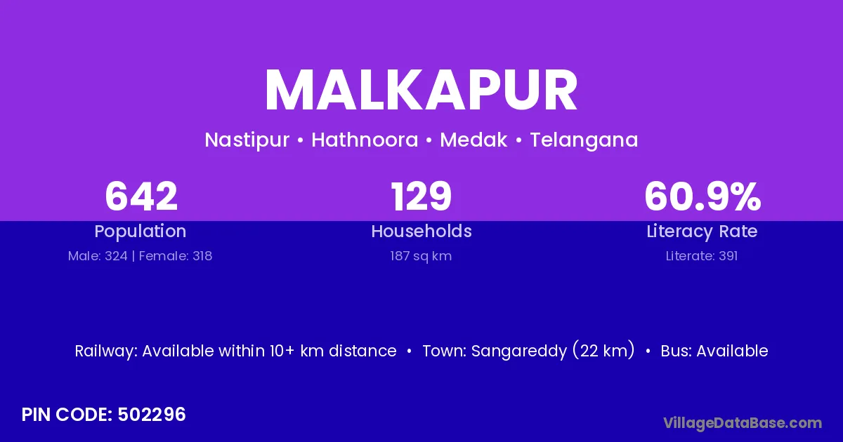 Kundalwadi (4 km) is the nearest town to Malkapur village for major economic activities and is located approximately 4 km away.