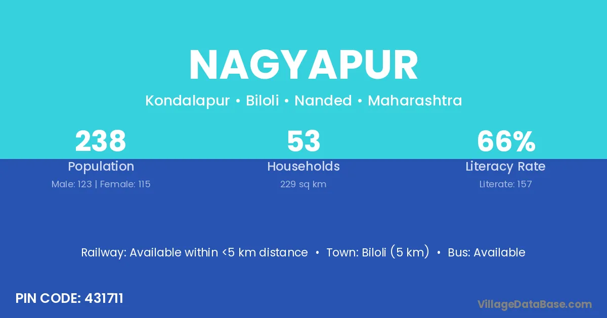 Biloli (5 km) is the nearest town to Nagyapur village for major economic activities and is located approximately 5 km away.