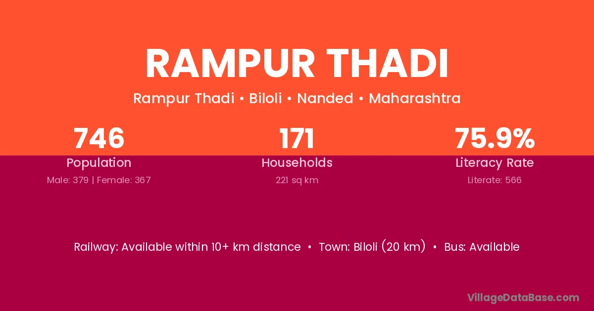 Biloli (20 km) is the nearest town to Rampur Thadi village for major economic activities and is located approximately 20 km away.