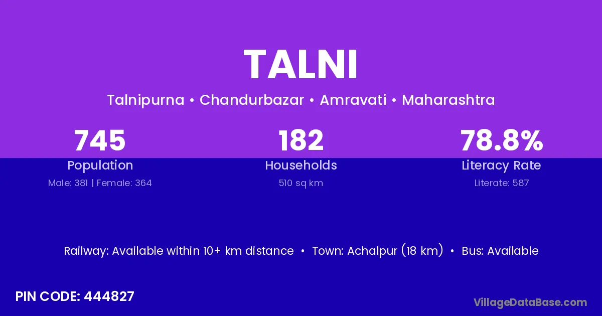 Biloli (10 km) is the nearest town to Talni village for major economic activities and is located approximately 10 km away.