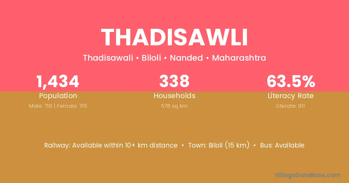 Biloli (15 km) is the nearest town to Thadisawli village for major economic activities and is located approximately 15 km away.