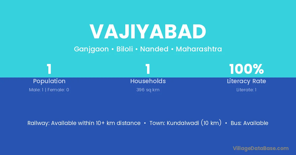 Kundalwadi (10 km) is the nearest town to Vajiyabad village for major economic activities and is located approximately 10 km away.