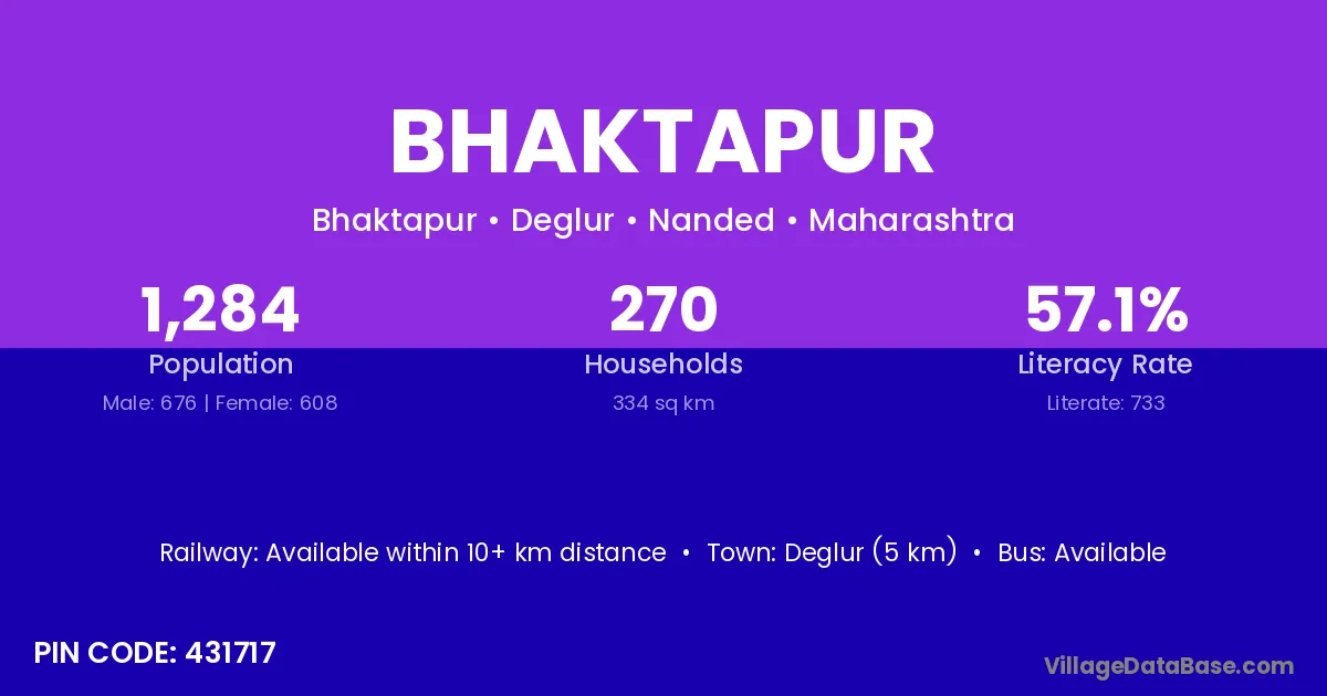 Deglur (5 km) is the nearest town to Bhaktapur village for major economic activities and is located approximately 5 km away.