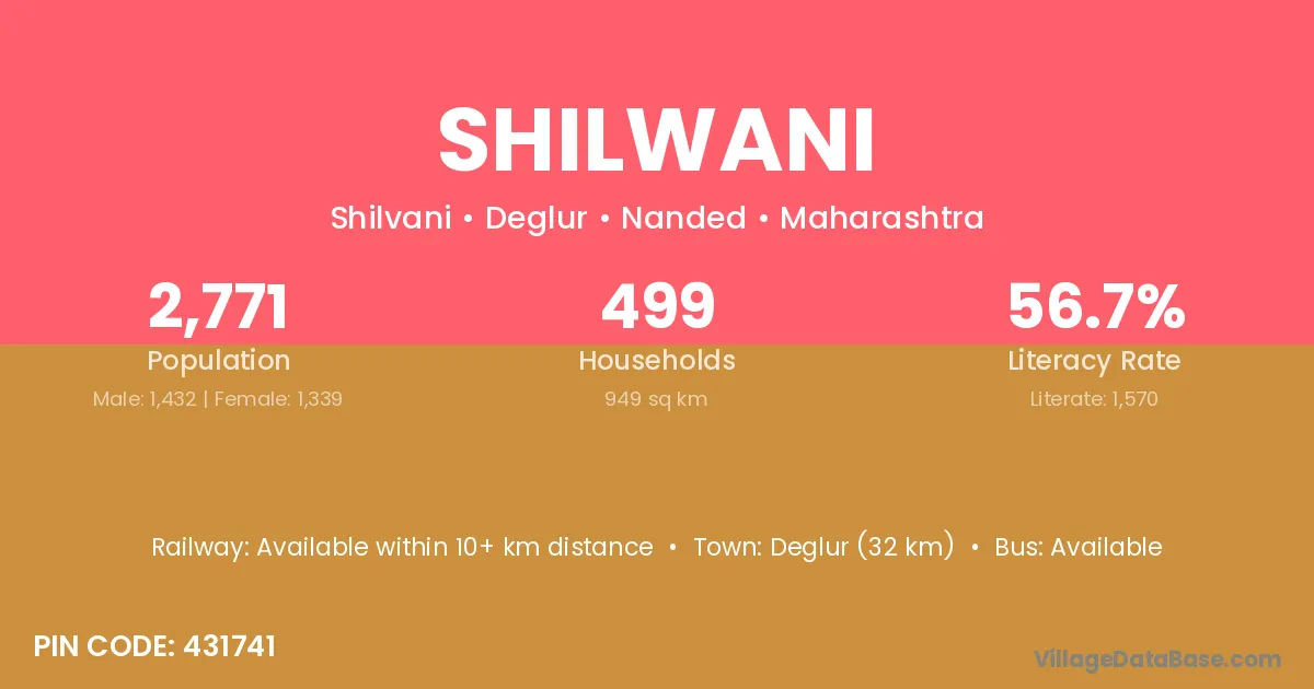 Deglur (32 km) is the nearest town to Shilwani village for major economic activities and is located approximately 32 km away.