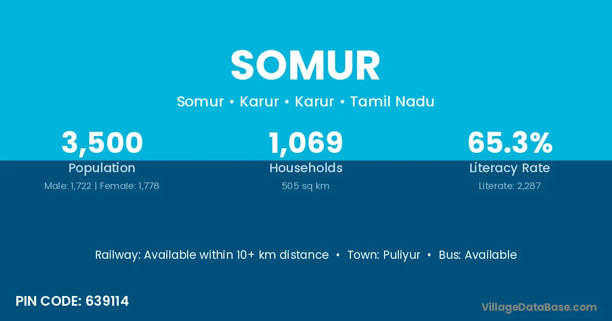 Somur village has a total population of 1,074 people, of which 524 are males and 550 are females.