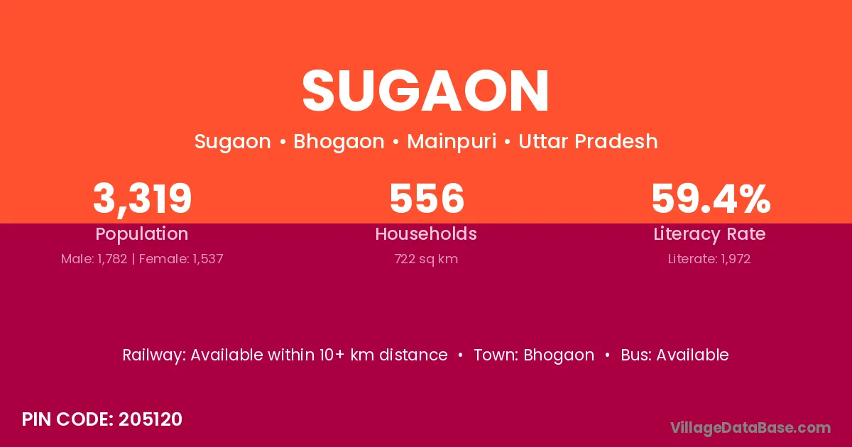 Sugaon village has a total population of 2,940 people, of which 1,498 are males and 1,442 are females.