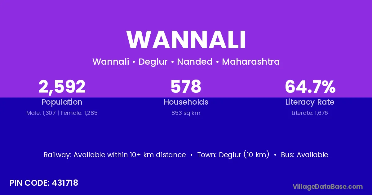 Deglur (10 km) is the nearest town to Wannali village for major economic activities and is located approximately 10 km away.