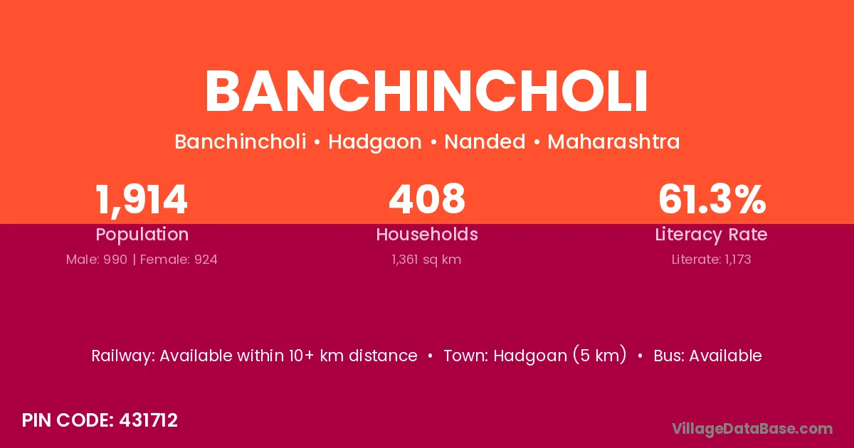 Hadgoan (5 km) is the nearest town to Banchincholi village for major economic activities and is located approximately 5 km away.