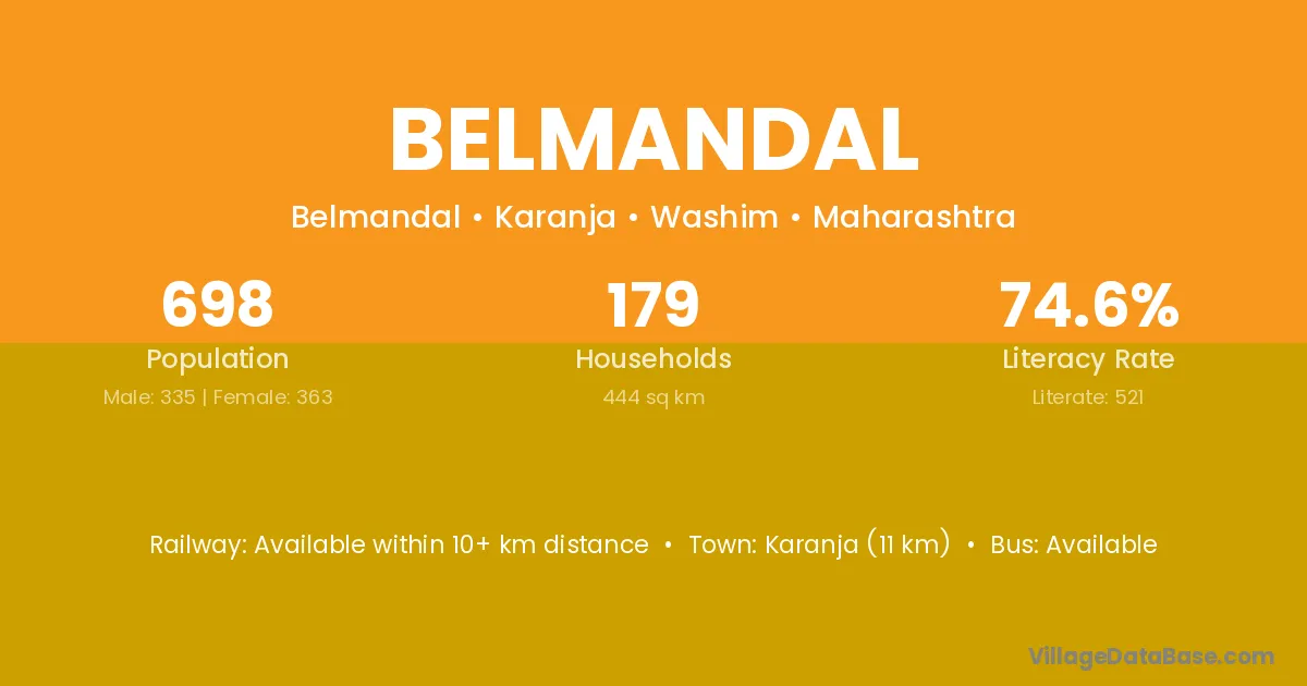 Hadgoan (7 km) is the nearest town to Belmandal village for major economic activities and is located approximately 7 km away.
