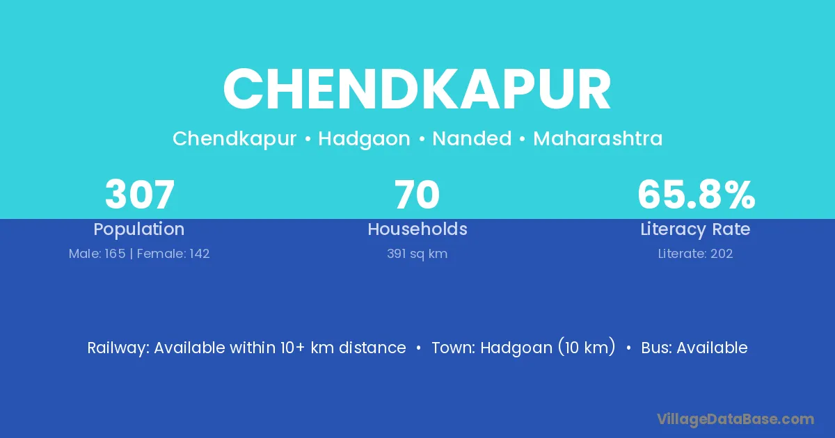 Hadgoan (10 km) is the nearest town to Chendkapur village for major economic activities and is located approximately 10 km away.