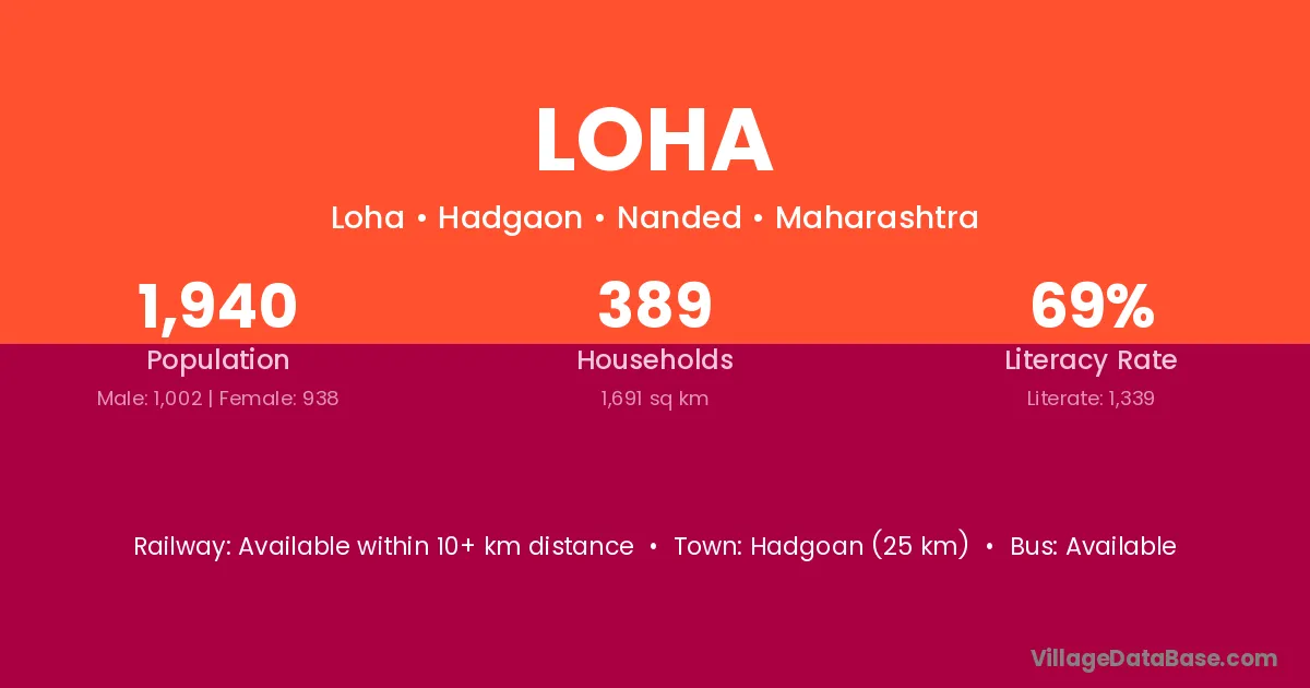 Hadgoan (25 km) is the nearest town to Loha village for major economic activities and is located approximately 25 km away.