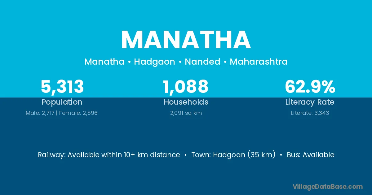 Hadgoan (35 km) is the nearest town to Manatha village for major economic activities and is located approximately 35 km away.