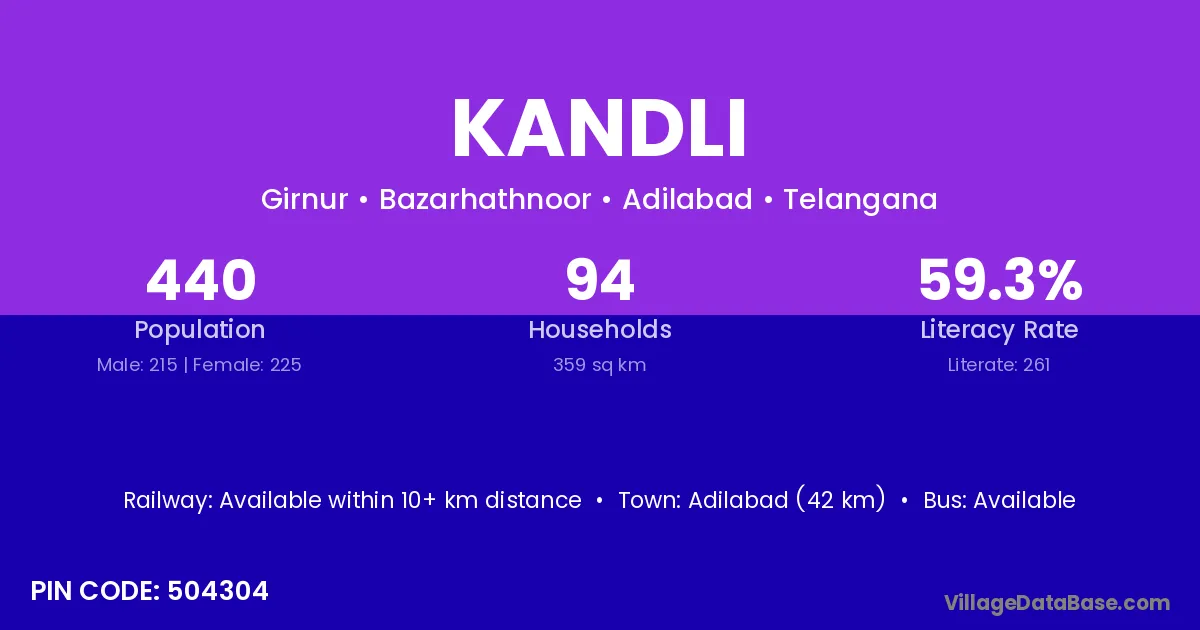 Hadgoan (10 km) is the nearest town to Kandli village for major economic activities and is located approximately 10 km away.