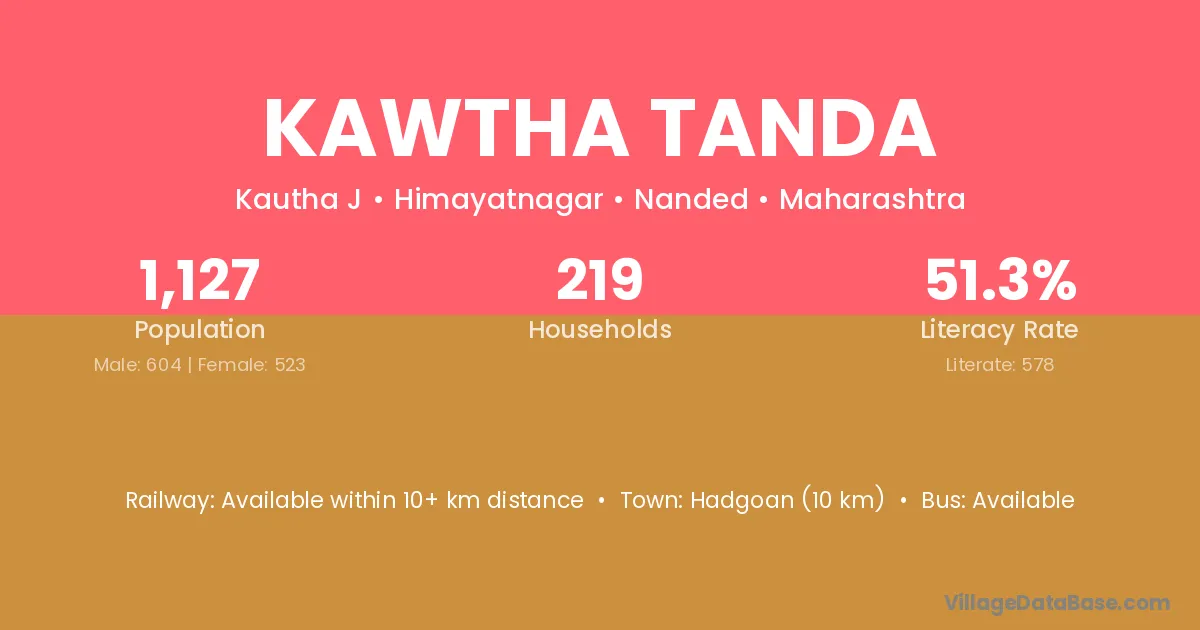 Kawtha Tanda village has a total population of 1,127 people, of which 604 are males and 523 are females.