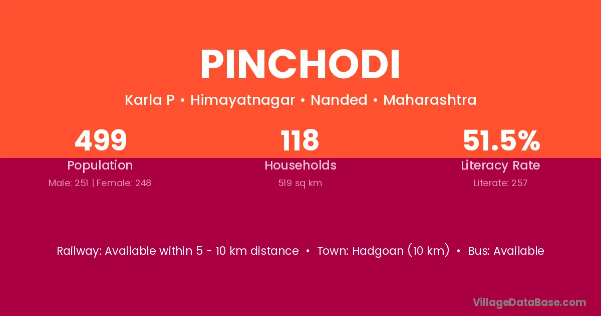 Pinchodi village has a total population of 499 people, of which 251 are males and 248 are females.
