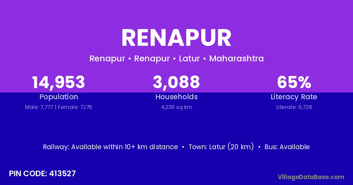 Hadgoan (10 km) is the nearest town to Renapur village for major economic activities and is located approximately 10 km away.