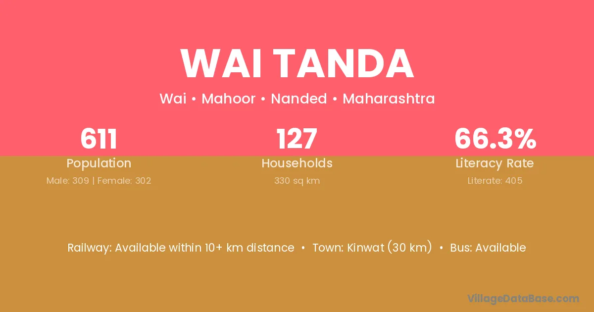Hadgoan (10 km) is the nearest town to Wai Tanda village for major economic activities and is located approximately 10 km away.