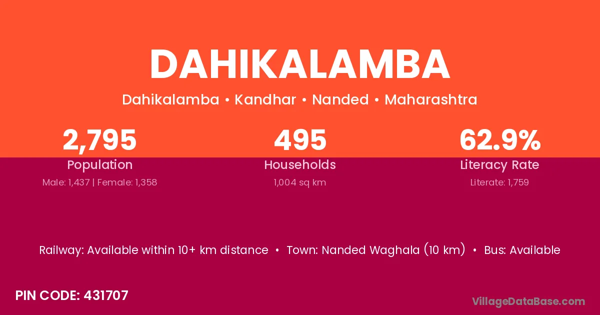 Nanded Waghala (10 km) is the nearest town to Dahikalamba village for major economic activities and is located approximately 10 km away.