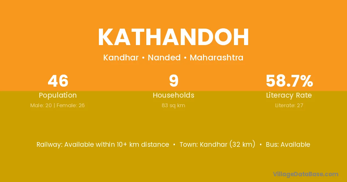 Kandhar (32 km) is the nearest town to Kathandoh village for major economic activities and is located approximately 32 km away.