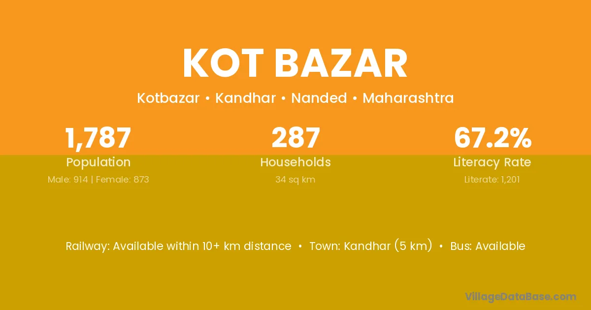 Kandhar (5 km) is the nearest town to Kot Bazar village for major economic activities and is located approximately 5 km away.