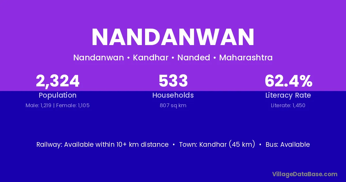 Kandhar (45 km) is the nearest town to Nandanwan village for major economic activities and is located approximately 45 km away.