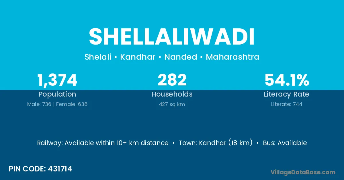Kandhar (18 km) is the nearest town to Shellaliwadi village for major economic activities and is located approximately 18 km away.