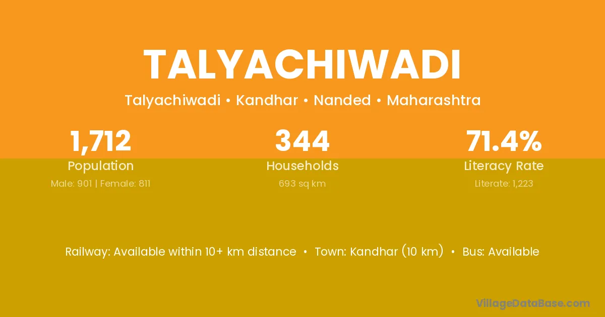 Kandhar (10 km) is the nearest town to Talyachiwadi village for major economic activities and is located approximately 10 km away.