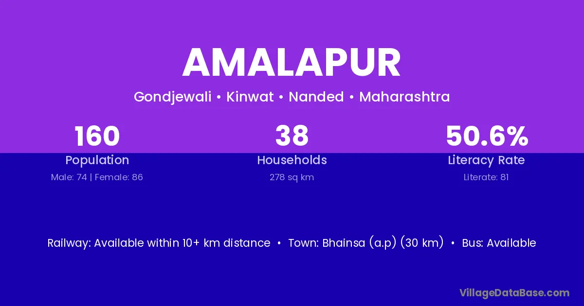 Bhainsa (a.p) (30 km) is the nearest town to Amalapur village for major economic activities and is located approximately 30 km away.