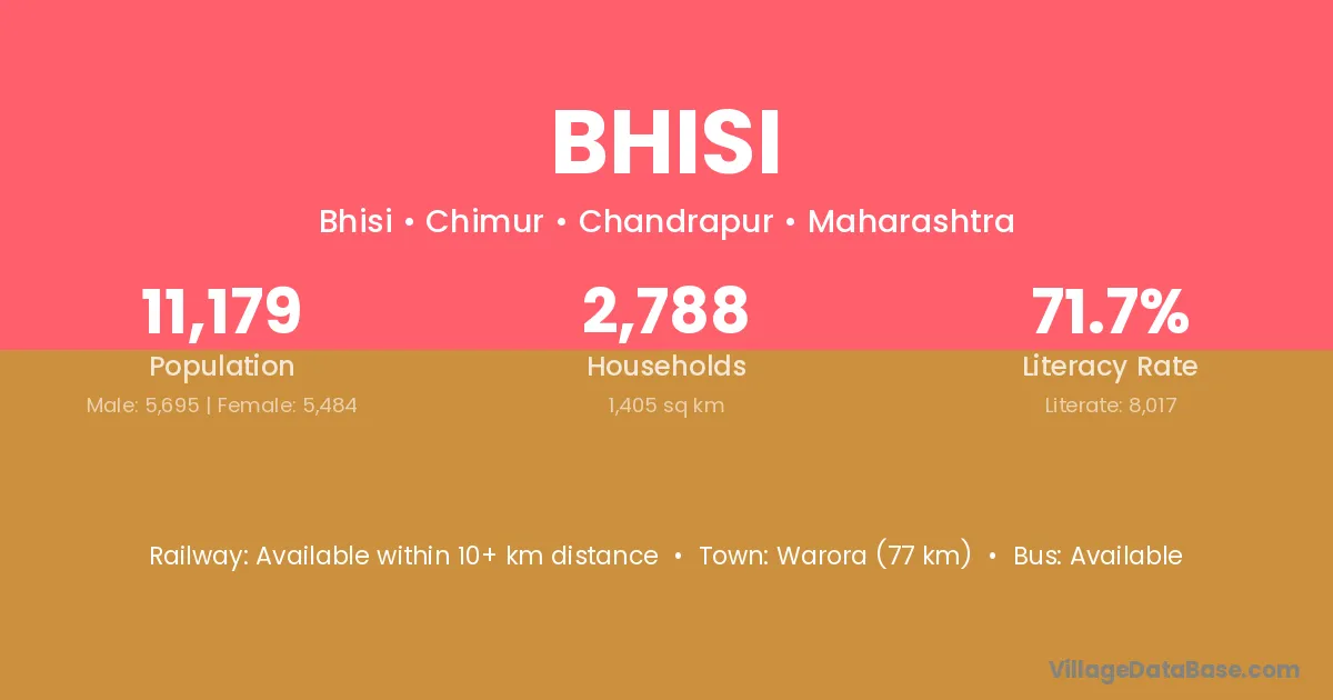 Kinwat (50 km) is the nearest town to Bhisi village for major economic activities and is located approximately 50 km away.