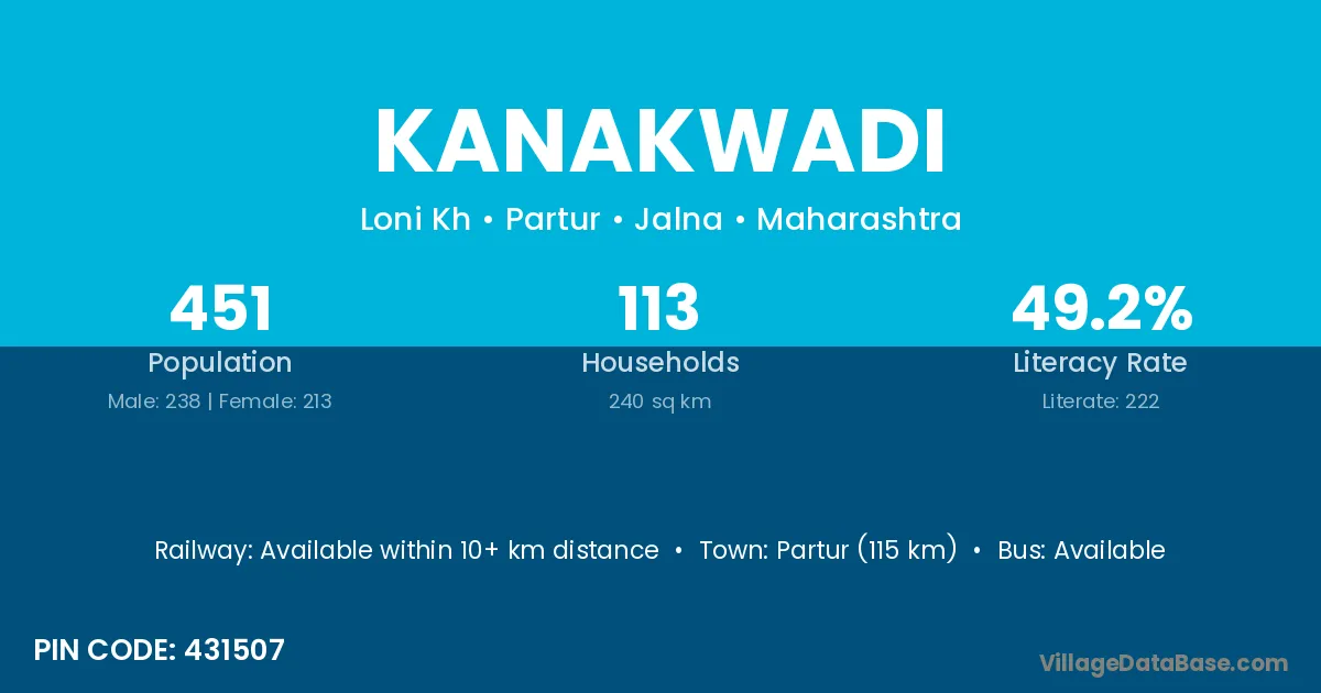Kinwat (16 km) is the nearest town to Kanakwadi village for major economic activities and is located approximately 16 km away.
