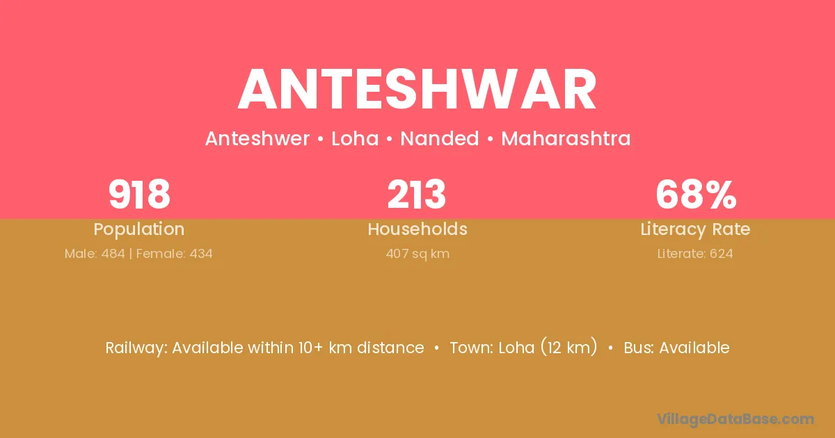 Anteshwar village has a total population of 918 people, of which 484 are males and 434 are females.